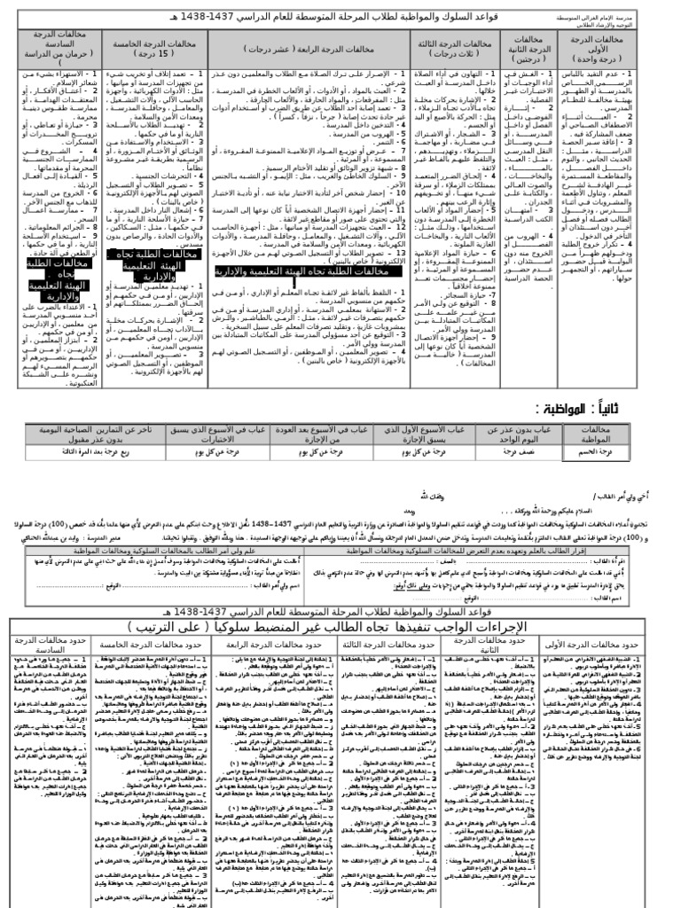 قواعد تنظيم السلوك والمواظبة الجديدة في ورقة واحدة موسوعة ورقات العربية