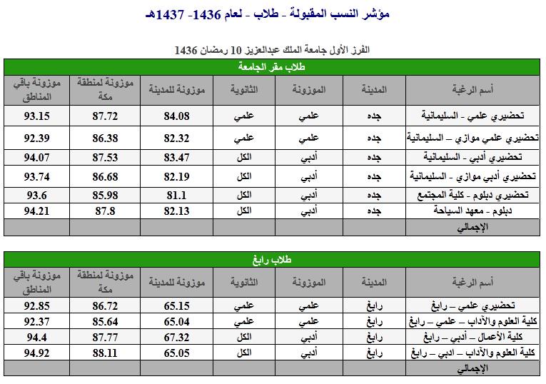 Uthman Alamoudi On Twitter مؤشر النسب المقبولة طلاب لعام 1436 1437هـ جامعة الملك عبدالعزيز Kau Http T Co W9ekvdgnla