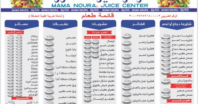 منيو مطعم ماما نورة الرياض المختصر كوم