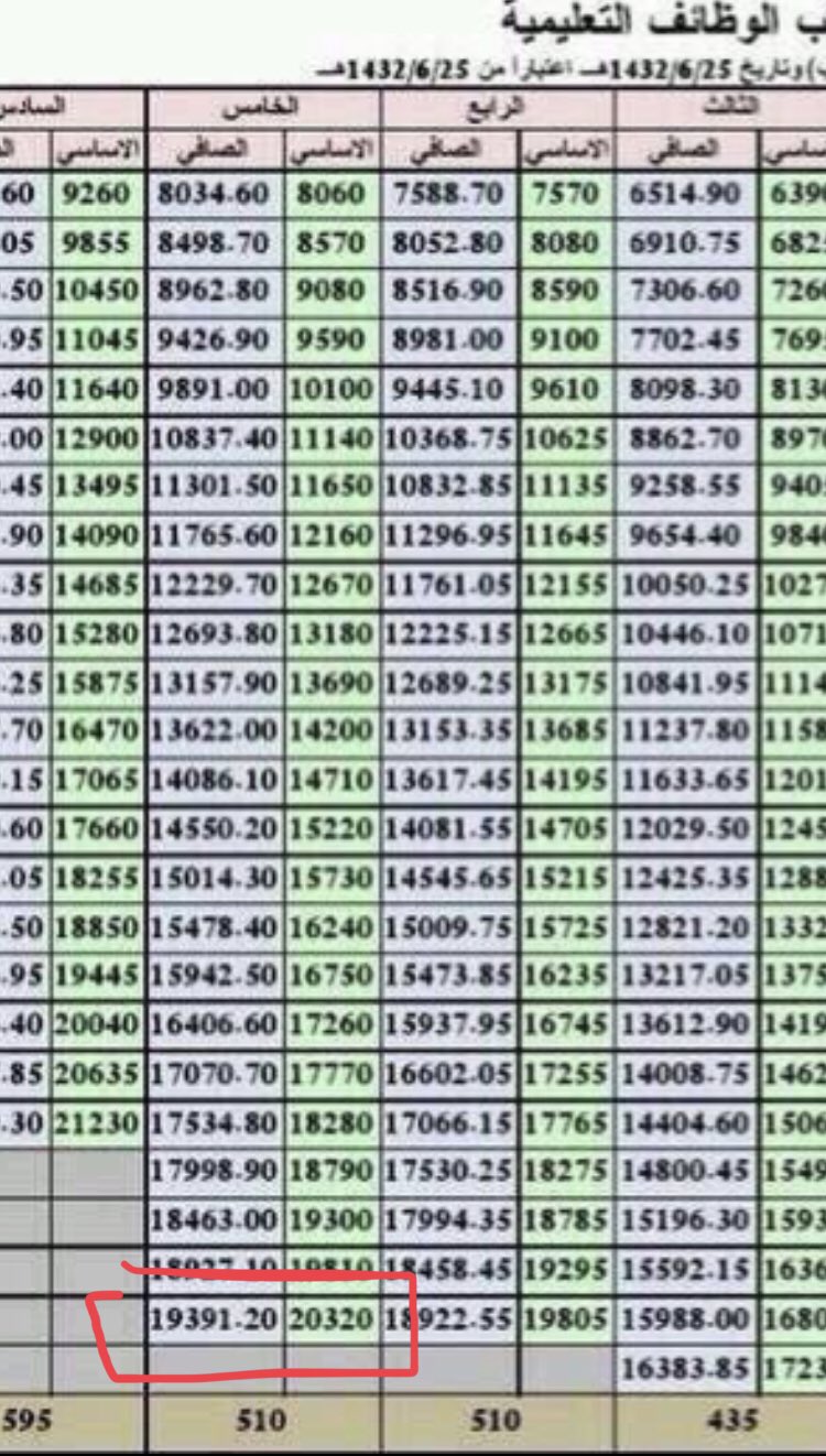 لطيفة الدليهان Twitterissa فرق نهاية سلم المستوى الخامس على السلم القديم ونهاية الممارس سلم رواتب المعلمين الجديد لصالح السلم الجديد والعلاوة تبدأ ب ٥٠٠ ولكن تنتهي ب٥٤٠ في نفس الرتبة بينما القديمة ثابتة على ٥١٠