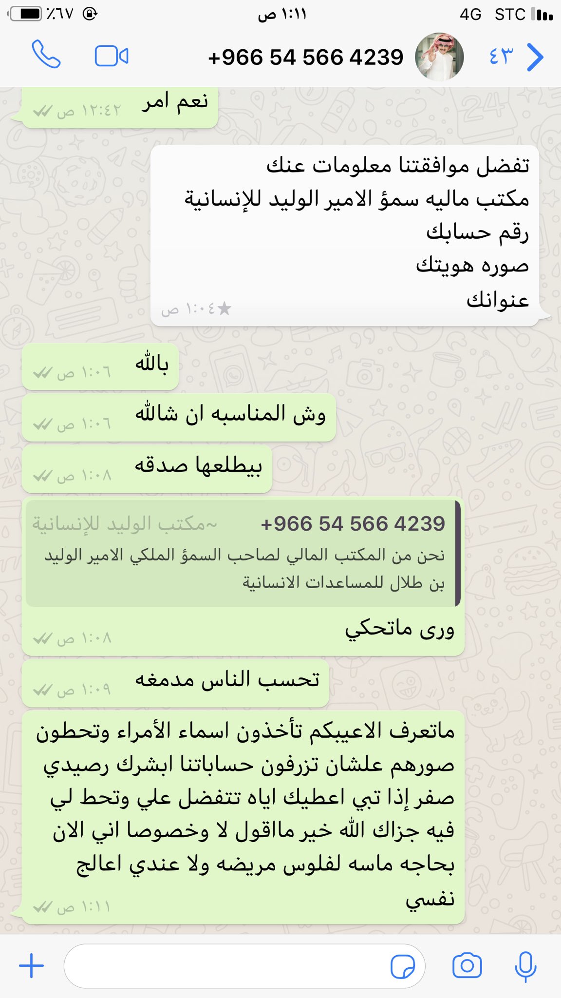 تحذرمن نصابين لرقم الرسمي ماليةالوليد En Twitter احذرو نصابين في تويتر ابتدؤ محادثه معي ع الخاص مساعدات من الامير الوليد بن طلال وثم تم ارسال واتس ع رقمي ويطلبون مبلغ تامين