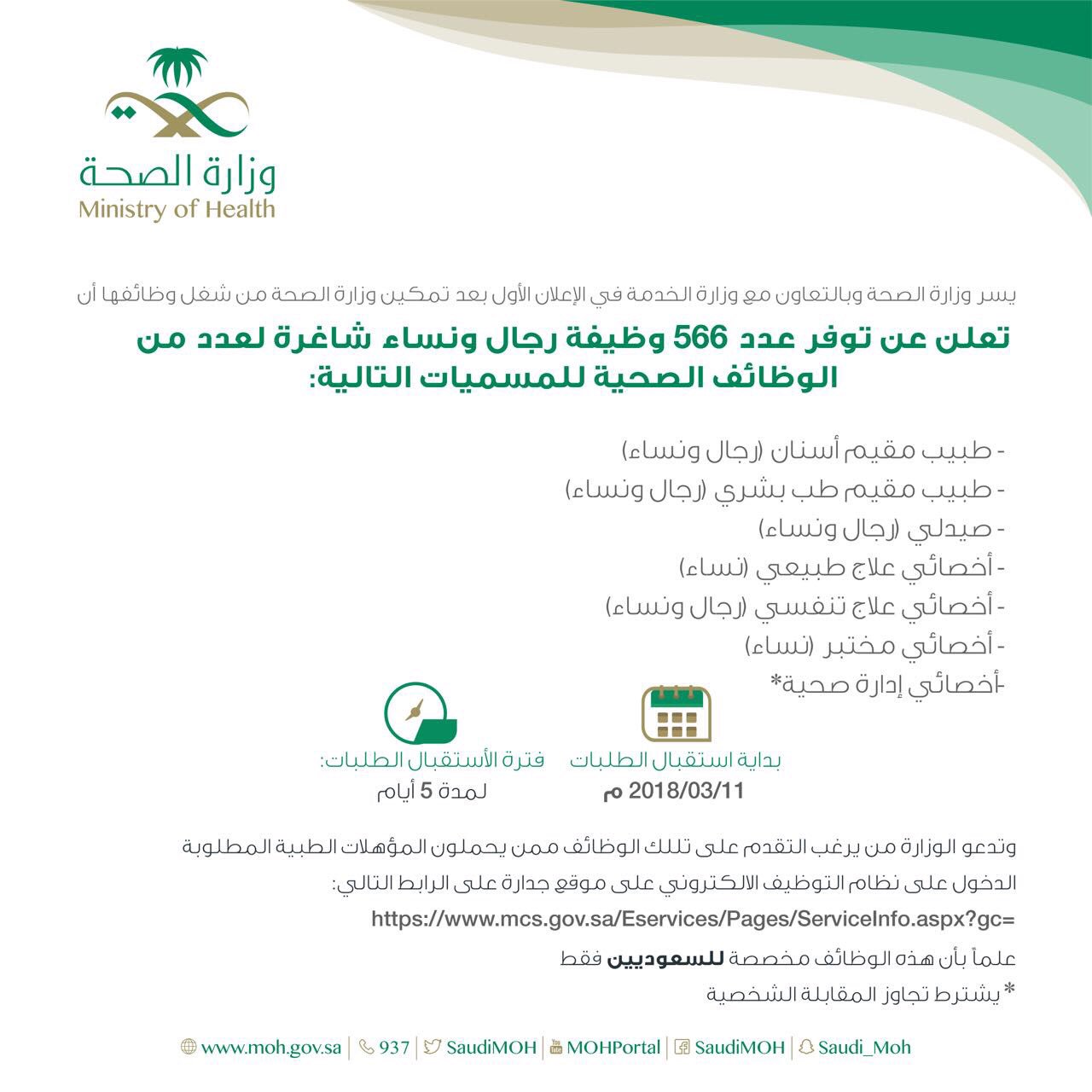 نظام التوظيف الالكتروني وزارة الصحة