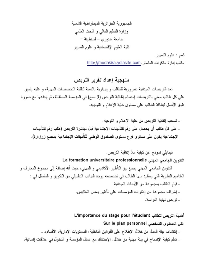 منهجية مقترحة لإعداد تقرير تربص ميداني 1