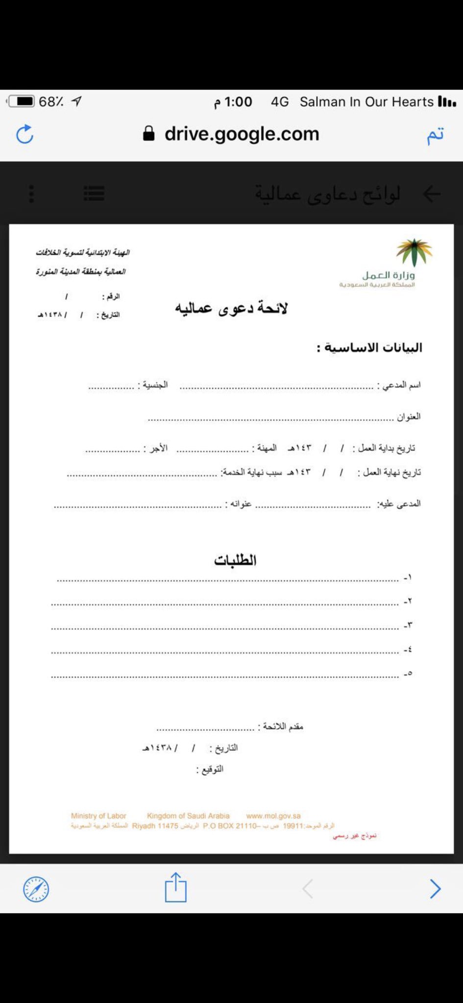 بندر العبيد On Twitter نموذج لائحة دعوى عمالية مخالصة مالية